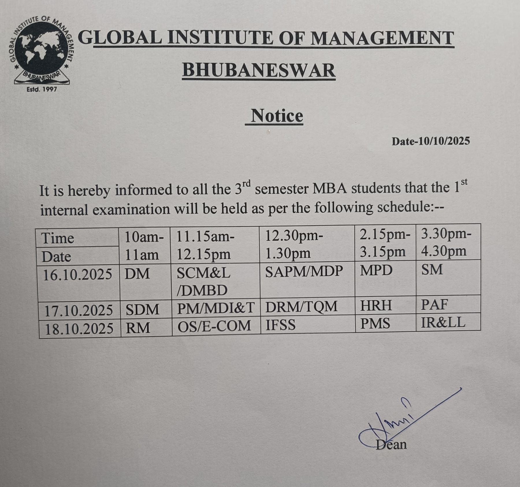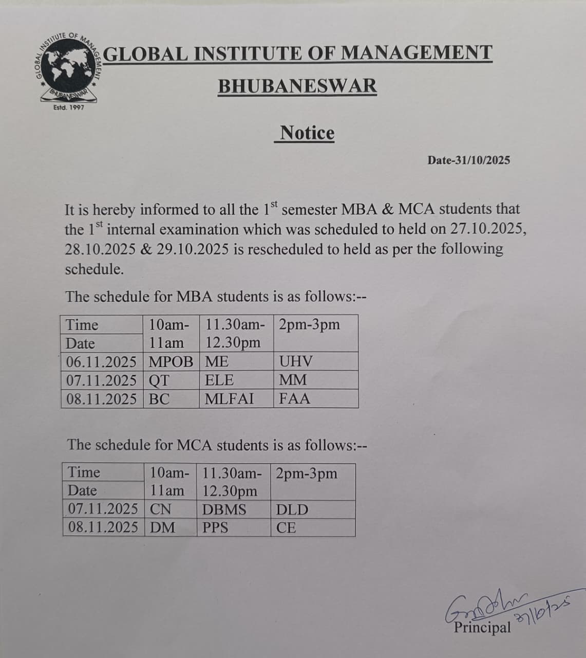 ➦ Notice for the 2nd Internal Examination of MBA and MCA 3rd Semester (Admission Batch 2024-26) Date: 12th, 13th and 15th Nov 2025.